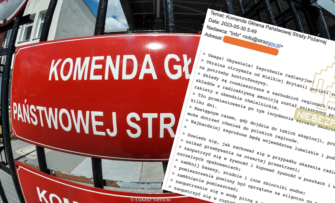 O sprawie informuje serwis niebezpiecznik.pl, na skrzynki mailowe trafiają wiadomości, które miały być wysłane przez Komendę Główną PSP i dotyczyć zagrożenia radiacyjnego.