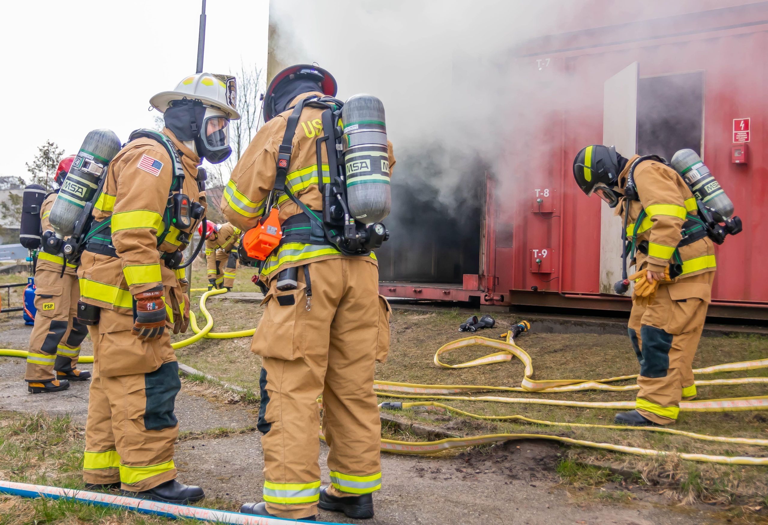 W ćwiczeniach wzięli udział strażacy z Ośrodka Szkolenia Komendy Wojewódzkiej PSP w Słupsku i amerykańscy strażacy z bazy US Navy w Redzikowie.