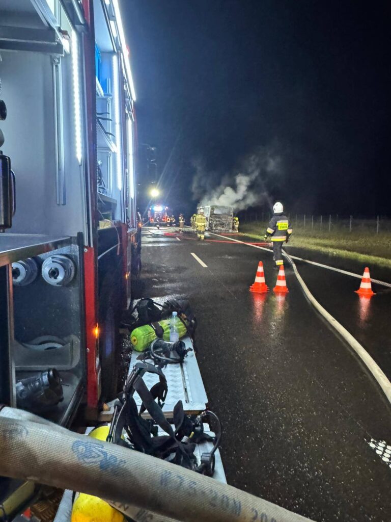 Dzisiaj nad ranem strażacy z powiatu koszalińskiego zostali zadysponowani do pożaru autobusu na trasie S11.