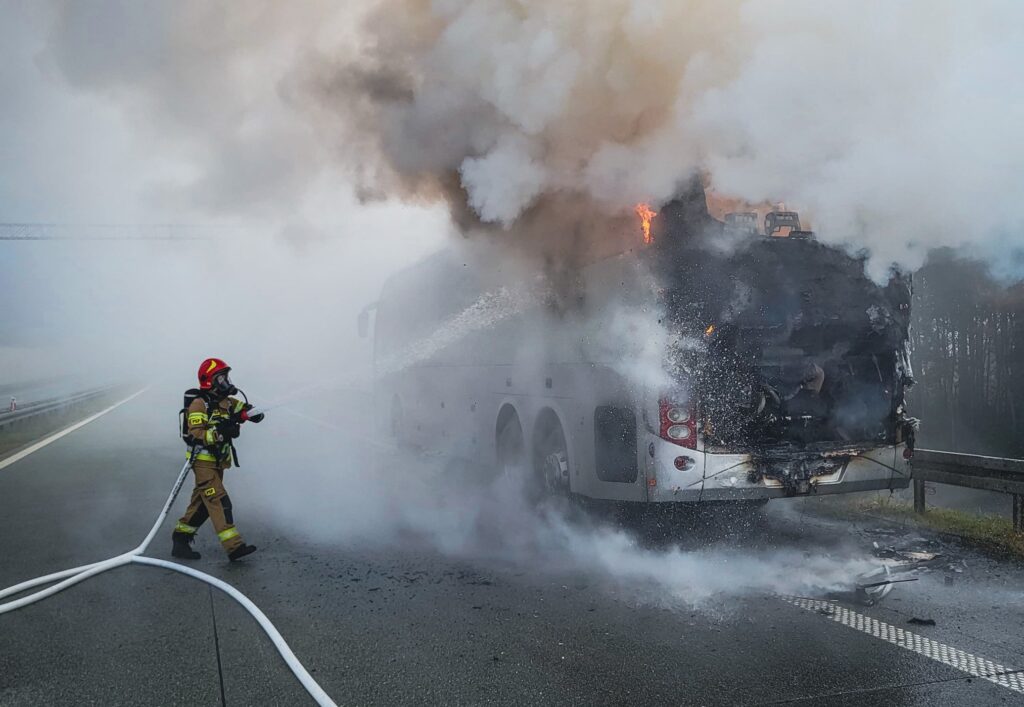 Pięć zastępów straży pożarnej interweniowało w środę na trasie S8, gdzie płonął autokar, którym podróżowała wycieczka szkolna ze Śląska.