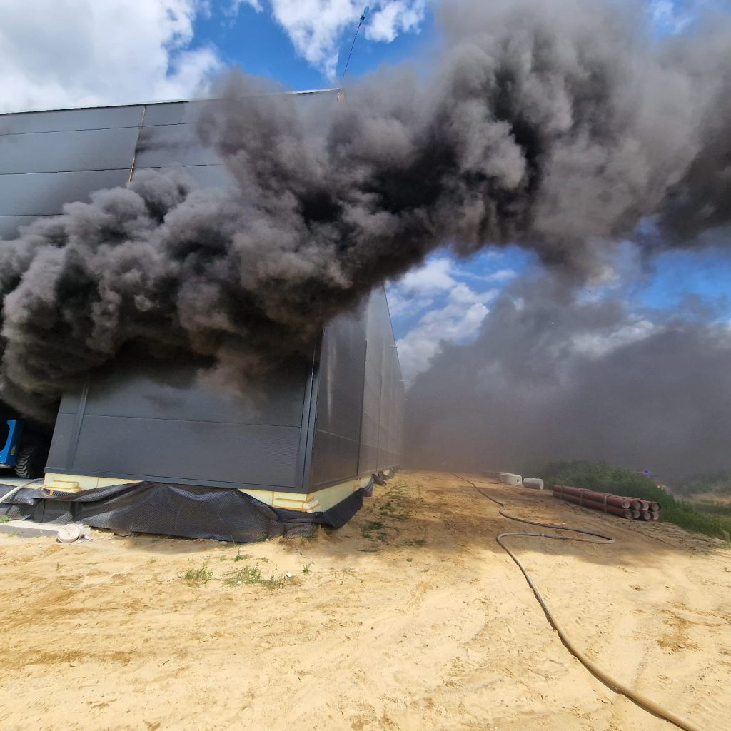 W miejscowości Gola strażacy gaszą pożar, który wybuchł w budowanej hali produkcyjno-magazynowej.
