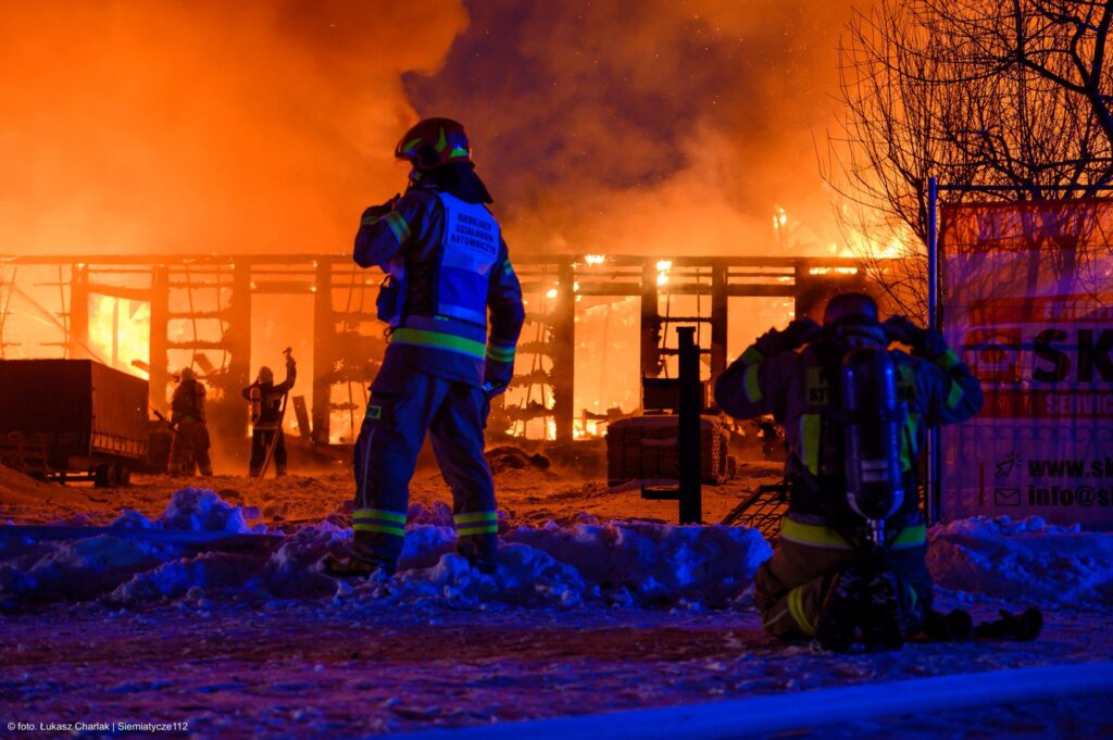 Kilkanaście zastępów straży pożarnej walczy z pożarem budynku wielorodzinnego w miejscowości Nurzec Stacja w województwie podlaskim.
