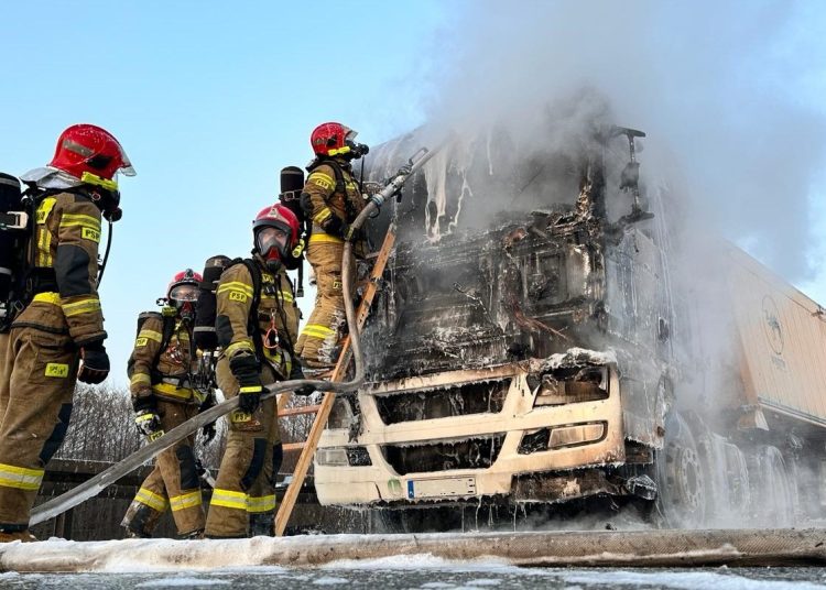 W czwartek przed godziną 17 straż pożarna w Żywcu otrzymała zgłoszenie o pożarze ciężarówki na drodze ekspresowej S1.
