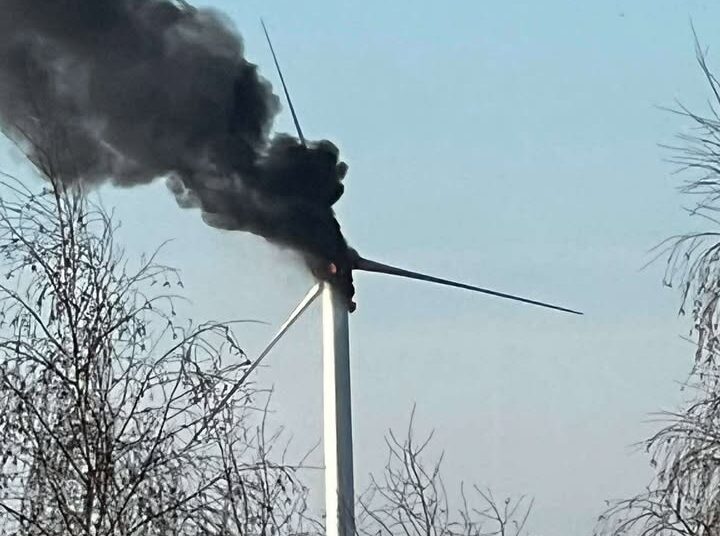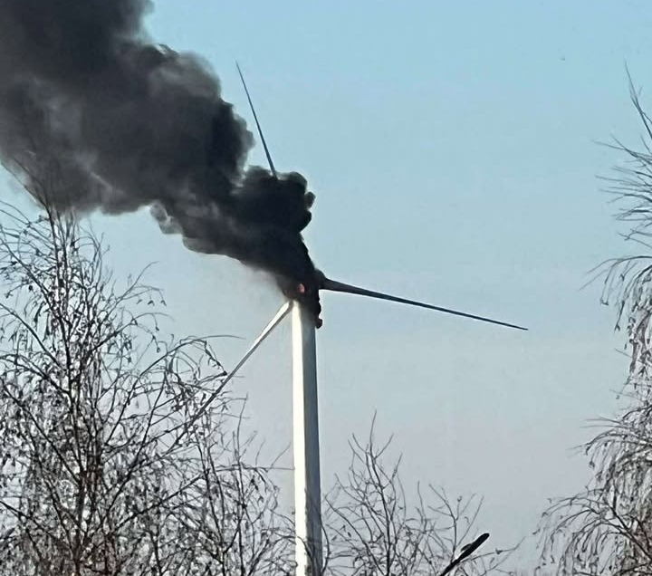 W miejscowości Kalska Wola w województwie łódzkim pali się gondola turbiny wiatrowej. Na miejscu są strażacy.