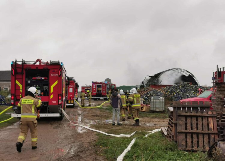 Dziesięć zastępów straży pożarnej gasiło w poniedziałek pożar hali namiotem w miejscowości Rzepiszew w województwie łódzkim.