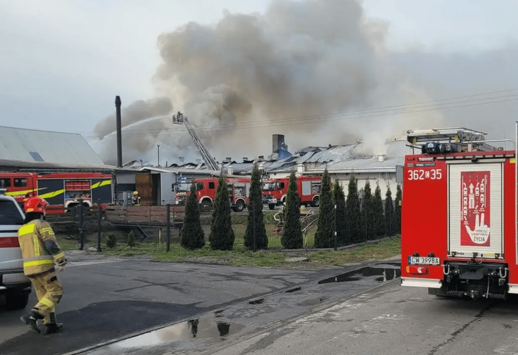Ogień objął halę produkcyjną o wymiarach 100 na 20 metrów i materiały znajdujące się w środku. Budynek wykorzystywany jest przez firmę, która zajmuje się produkcją karmy dla zwierząt.