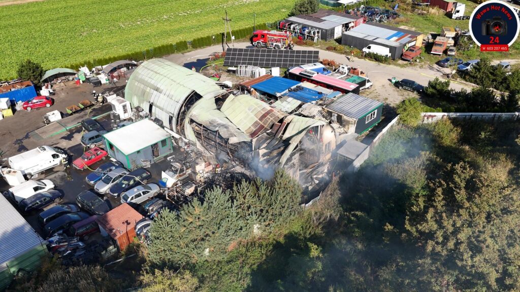 Paliła się hala o powierzchni około 300 metrów kwadratowych, w której składowane były różnego rodzaju oleje, materiały plastikowe i pianki. W trakcie akcji dach zawalił się do środka.