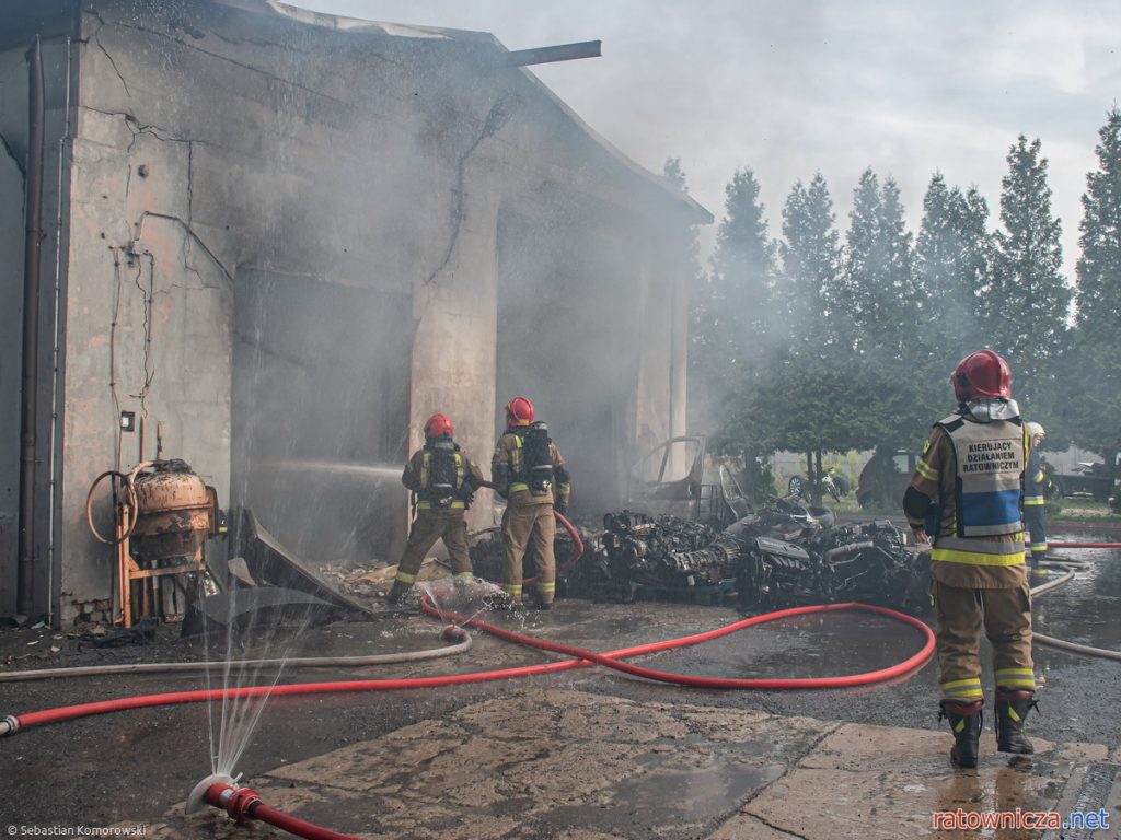 Zgłoszenie o pożarze strażacy otrzymali po godzinie siedemnastej. Ogień objął halę magazynową, w której składowany były części motoryzacyjne z rozebranych samochodów.
