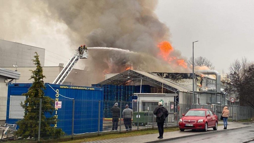Około trzydzieści zastępów straży pożarnej gasi pożar hali w Nowym Dworze Mazowieckim.