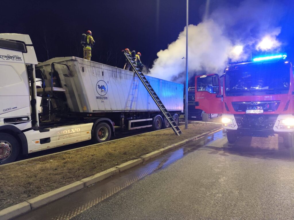 W nocy ze środy na czwartek strażacy zostali zadysponowani do pożaru naczepy przy wjeździe na autostradę A4.