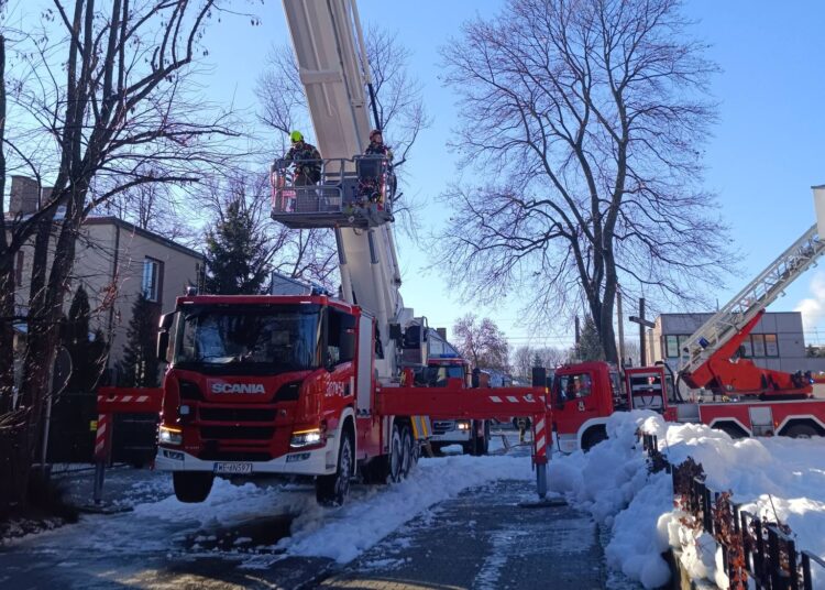 Przed godziną dwunastą na miejsce dotarł samochód specjalny z podnośnikiem z Jednostki Ratowniczo – Gaśniczej nr 7 w Warszawie.