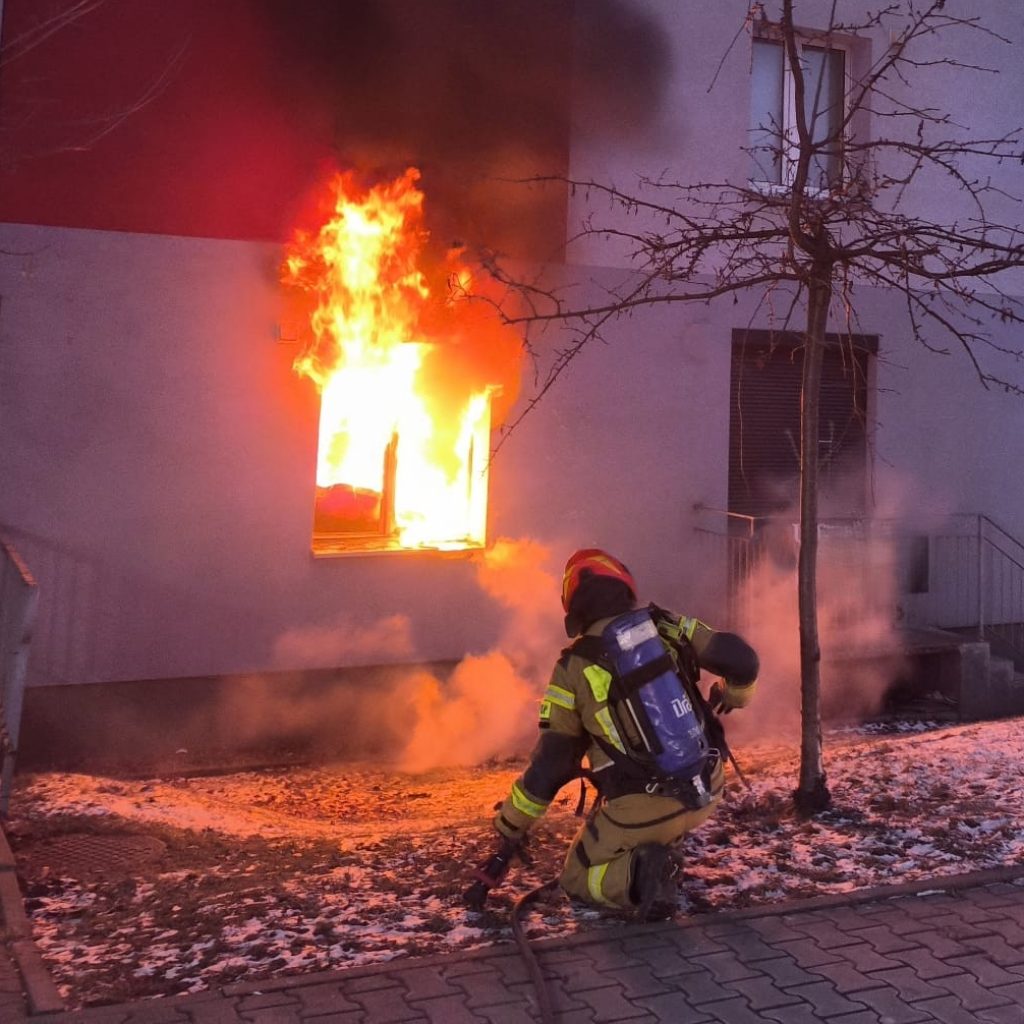 Paliło się mieszkanie na parterze budynku wielorodzinnego. Jeszcze przed przyjazdem pierwszych zastępów budynek opuściło sześć osób, trzy osoby znajdowały się na drugim piętrze i musiały zostać ewakuowane przez strażaków.