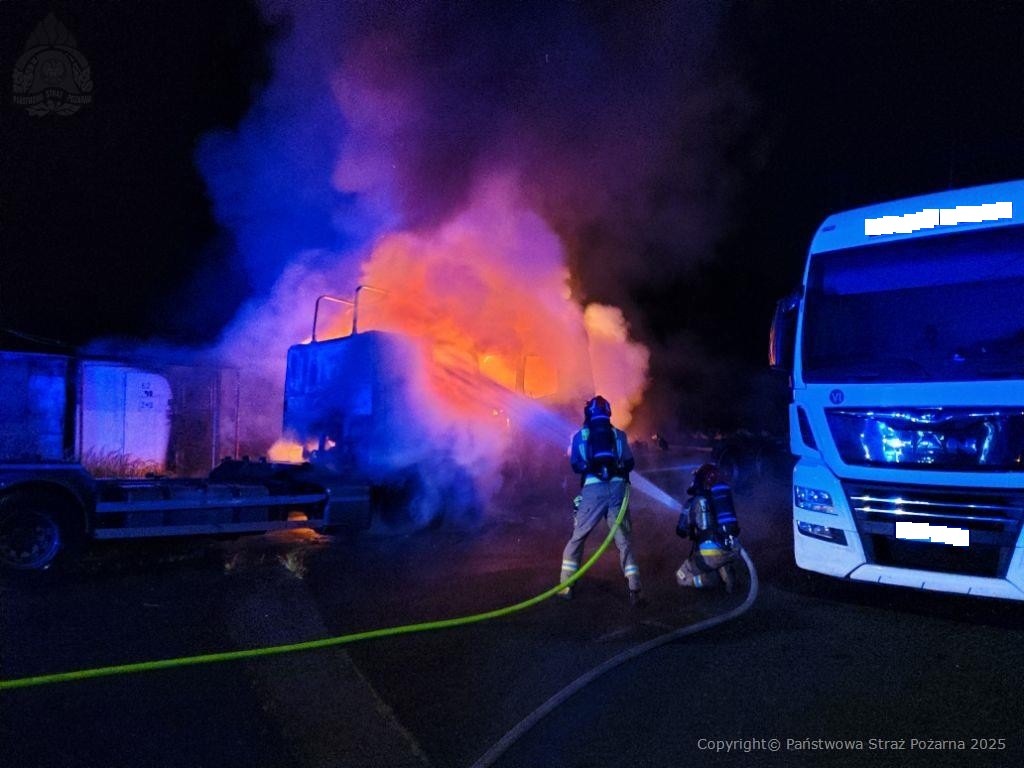 Zgłoszenie o pożarze wpłynęło do straży pożarnej przed godziną drugą w nocy. Na terenie giełdy warzywnej płonęły w całości dwa samochody ciężarowe. Z ogniem walczyły cztery zastępy.