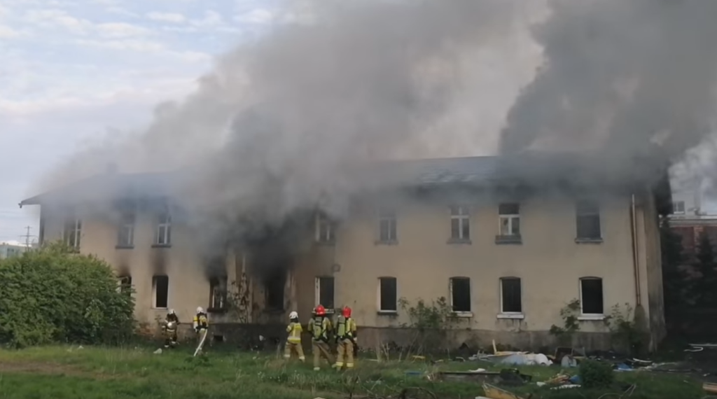 Zgłoszenie o pożarze Stanowisko Kierowania KM PSP w Katowicach otrzymało około godziny 18.34. Palił się niezamieszkały, dwukondygnacyjny budynek murowany.