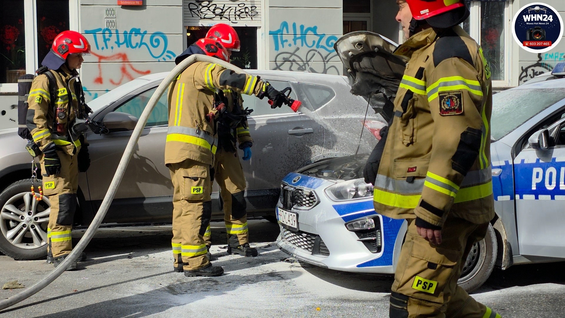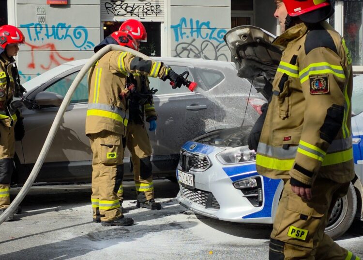Do wybuchu pożaru w radiowozie Kia doszło w momencie, kiedy policjanci jechali alarmowo do zdarzenia na ulicy Marszałkowskiej.