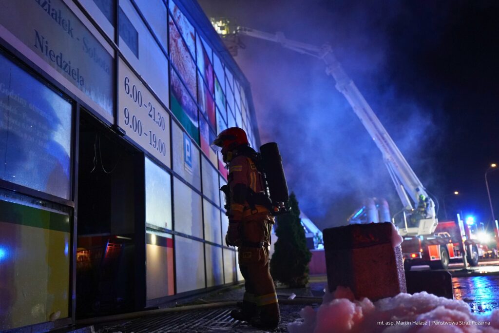 Ponad stu strażaków z Poznania i okolicznych jednostek gasiło w nocy z niedzieli na poniedziałek pożar sklepu i galerii handlowej.