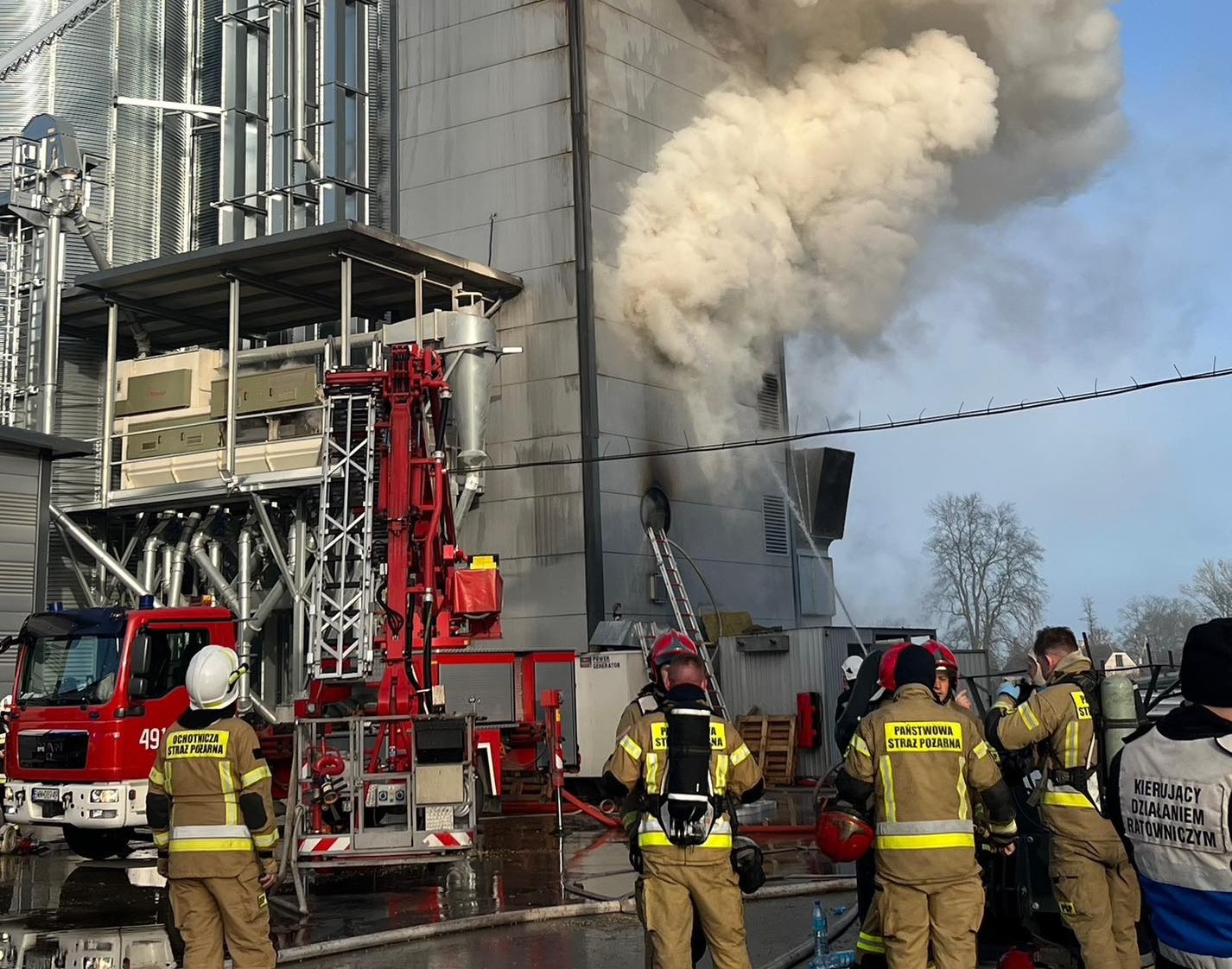W momencie przyjazdu pierwszych zastępów straży pożarnej stwierdzono, że pali się wnętrze instalacji suszarni, w której znajdowało się około 70 ton ziarna. Aby dotrzeć do źródła ognia strażacy musieli wycinać otwory przez które podawana jest woda.