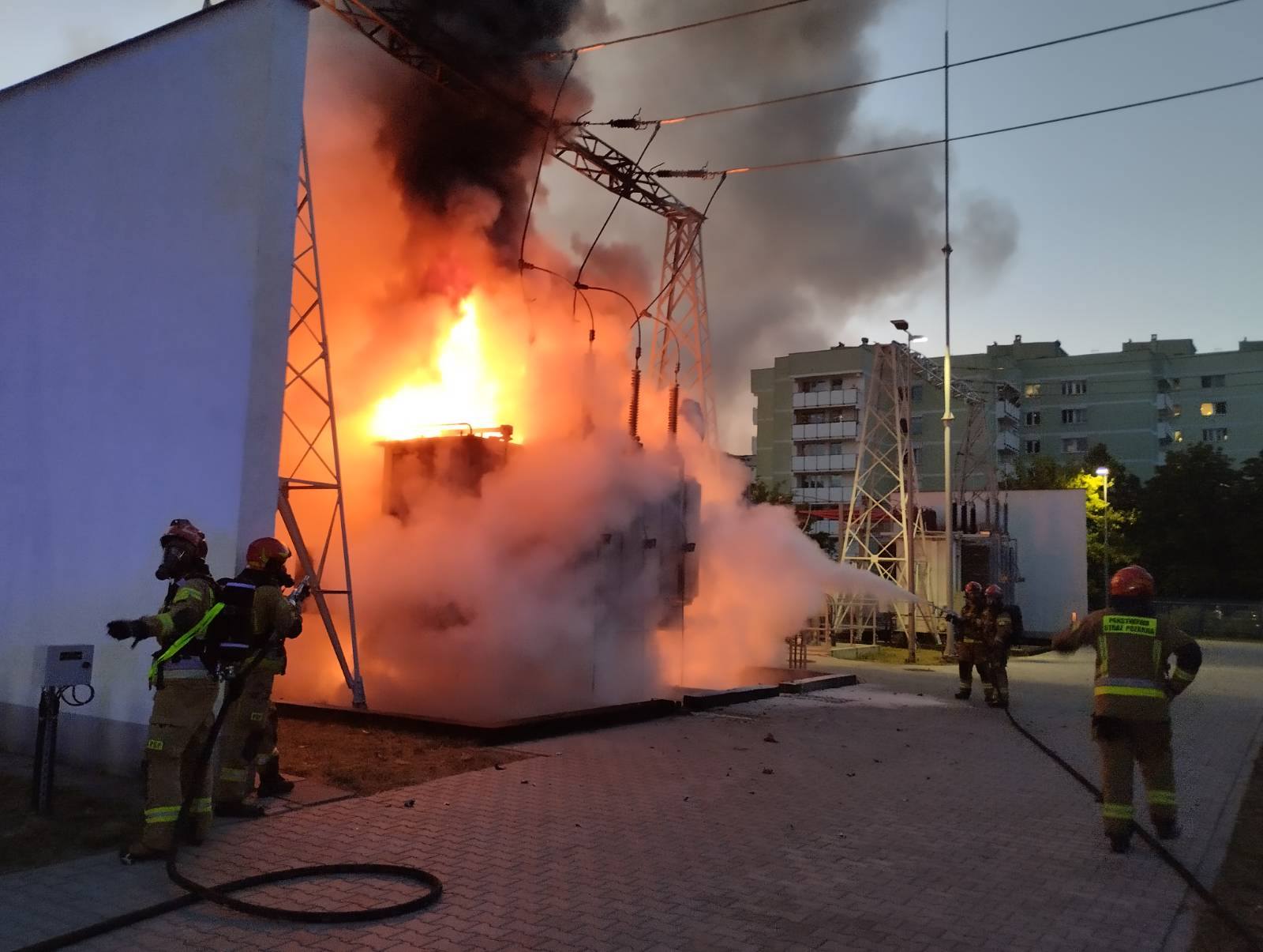 Kilkanaście zastępów straży pożarnej zaangażowano w gaszenie płonącego transformatora na warszawskim Grochowie.