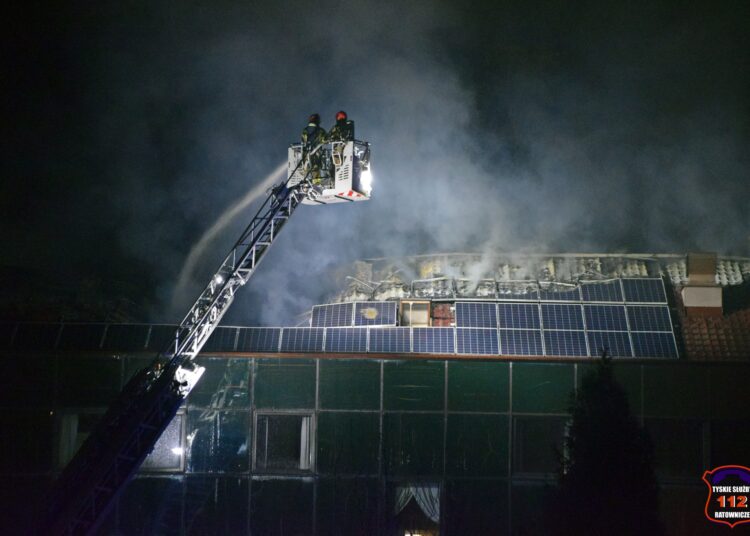 Blisko dwadzieścia zastępów straży pożarnej gasiło dzisiaj w nocy pożar dachu hotelu w Tychach.
