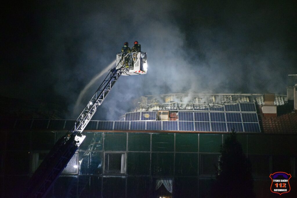Blisko dwadzieścia zastępów straży pożarnej gasiło dzisiaj w nocy pożar dachu hotelu w Tychach.