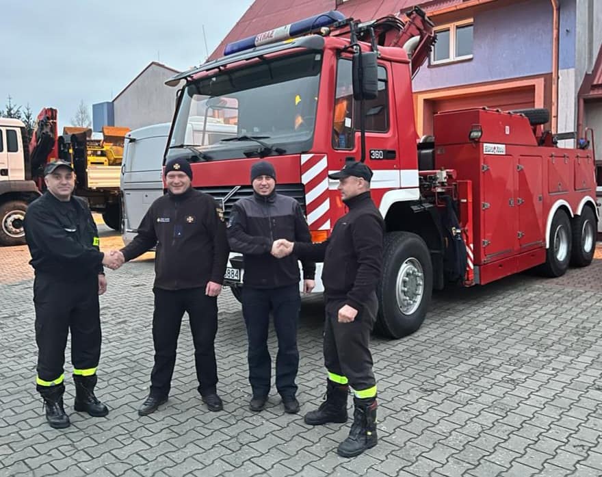 Decyzją Komendanta Głównego PSP na Ukrainę pojechał ciężki samochód ratownictwa technicznego typu Mega-City na podwoziu Volvo FL10 z Jednostki Ratowniczo – Gaśniczej nr 1 w Siedlcach, wyprodukowany w 1997 roku.