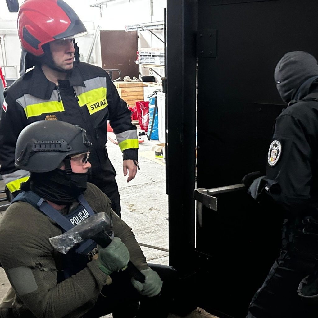 Strażacy z Ośrodka Szkolenia KW PSP Wrocław przeszkolili wrocławskich policjantów z siłowego otwierania drzwi.