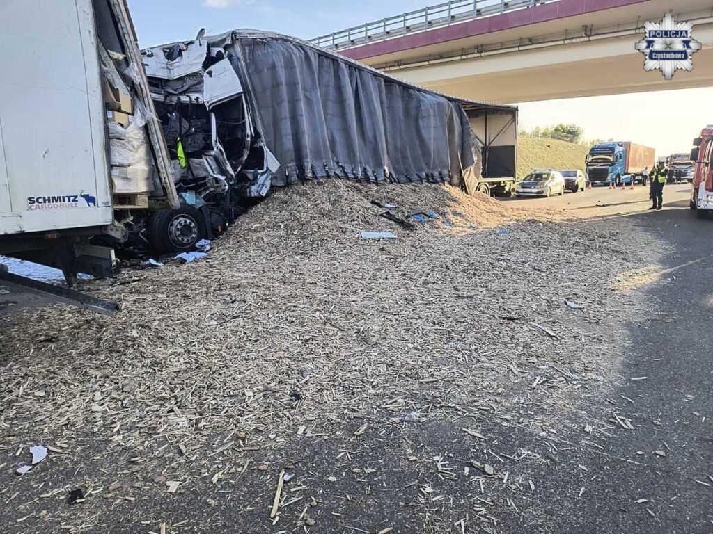 Ze wstępnych ustaleń wynika, że 49-latek kierujący ciągnikiem siodłowym marki Volvo, wraz z naczepą, nie dostosował prędkości do warunków drogowych i najechał na tył naczepy, poprzedzającego zestawu ciężarowego. Uderzony ciągnik marki Scania uderzył następnie w tył kolejnej naczepy. Na skutek zdarzenia z pojazdów odpadły elementy, które uszkodziły poruszający się lewym pasem pojazd osobowy marki Audi – przekazała policja.