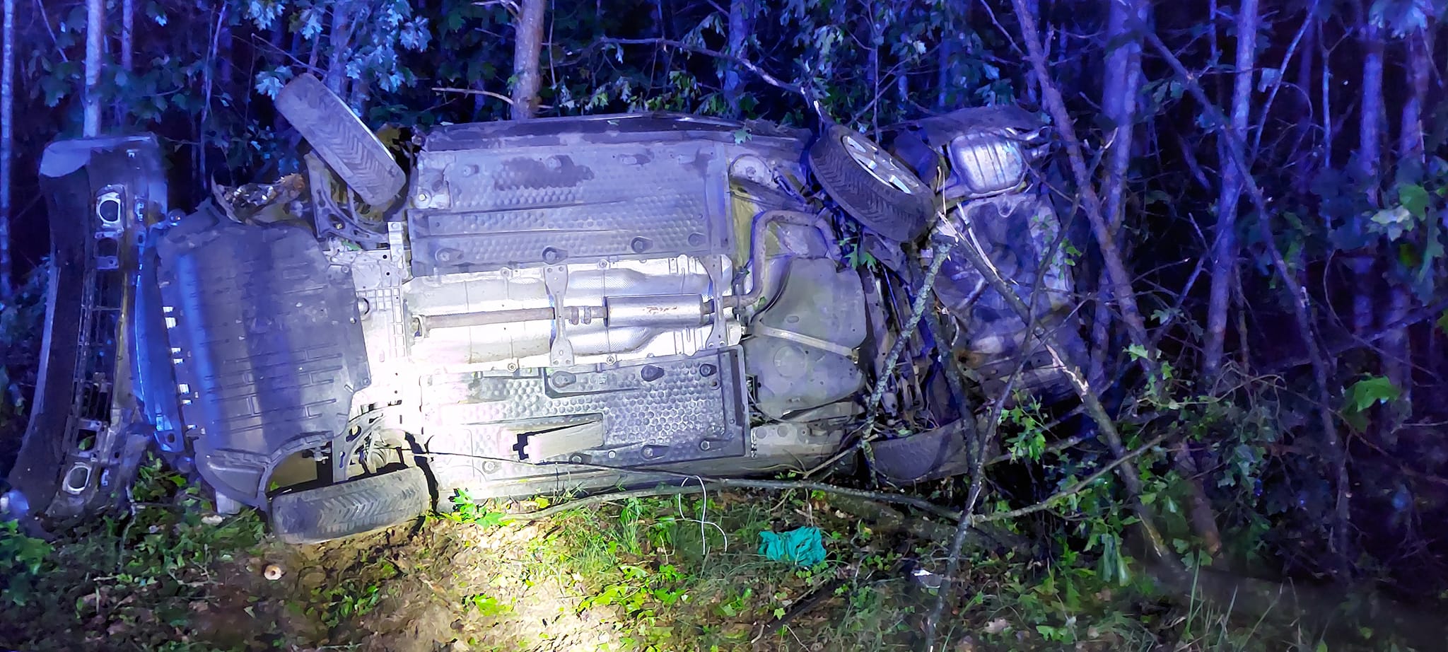 Po godzinie trzeciej w nocy kierująca skodą z nieznanych przyczyn zjechała z drogi i uderzyła w drzewo, następnie pojazd dachował.