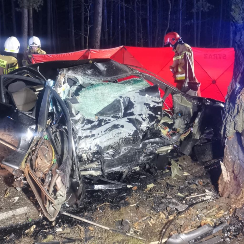 Po godzinie 20 kierujący samochodem BMW z nieustalonych przyczyn zjechał z drogi i uderzył czołowo w drzewo.