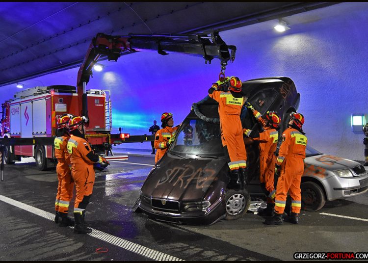160 strażaków i kilkadziesiąt pojazdów wzięło udział w ćwiczeniach pod kryptonimem ‘Tunel S7’, które odbyły się dzisiaj w tunelu w ciągu odcinka drogi ekspresowej S7 Naprawa – Skomielna Biała.