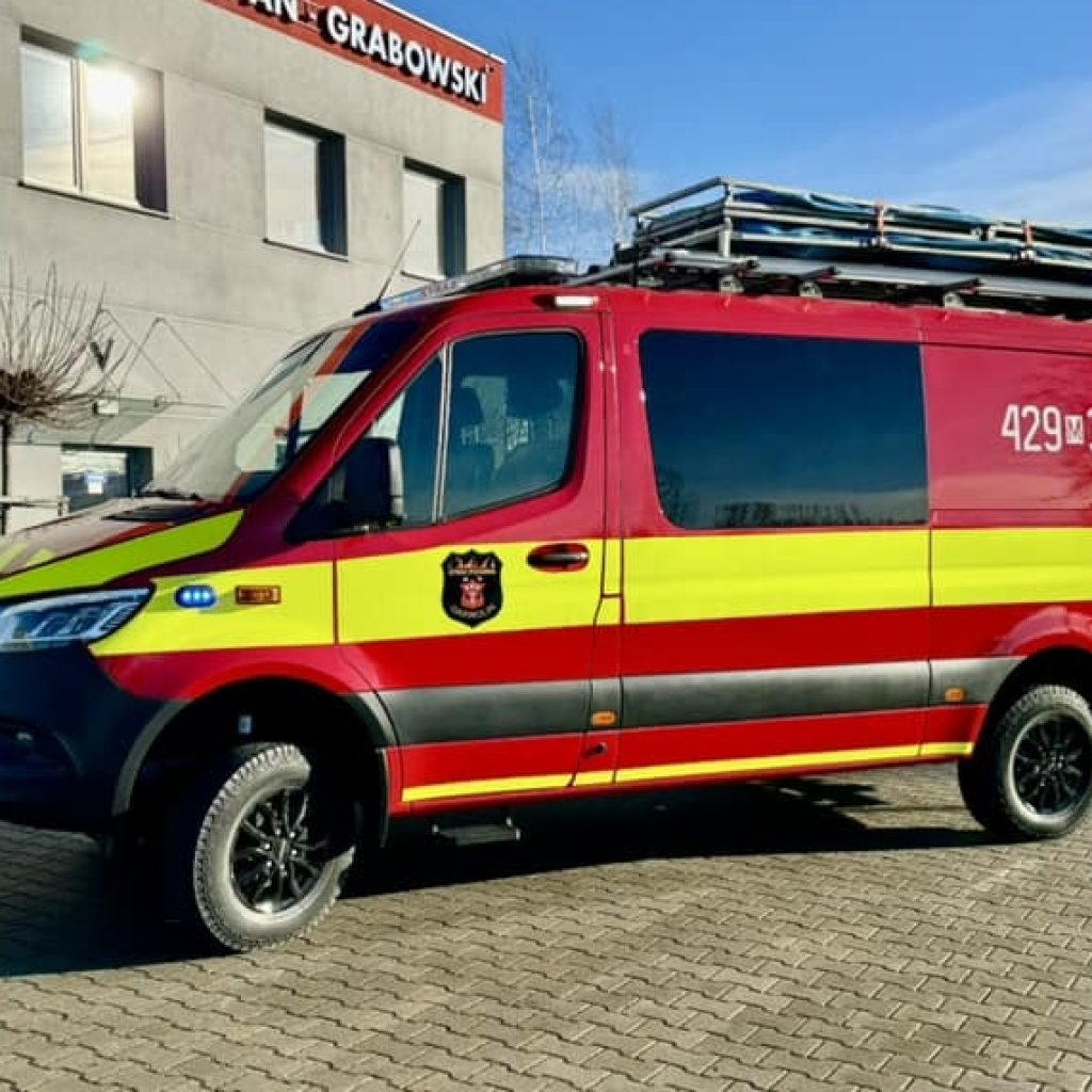 Nowy nabytek to Mercedes Sprinter z napędem 4×4, przystosowany do przewozu sześciu strażaków. Jego przestrzeń ładunkowa wyposażone została w regały na sprzęt i wyciągarkę. Na środku znajduje się specjalny wózek sprzętowy. Dach przystosowany do transportu przenośnego zbiornika na wodę i drabiny.