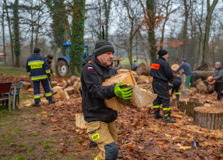 Na terenie parku, na którym znajduje się placówka, strażacy przeprowadzili prace polegające na pocięciu i porąbaniu drzewa. Pozyskany w ten sposób materiał zostanie wykorzystany jako opał, co realnie wesprze funkcjonowanie domu dziecka w okresie zimowym.