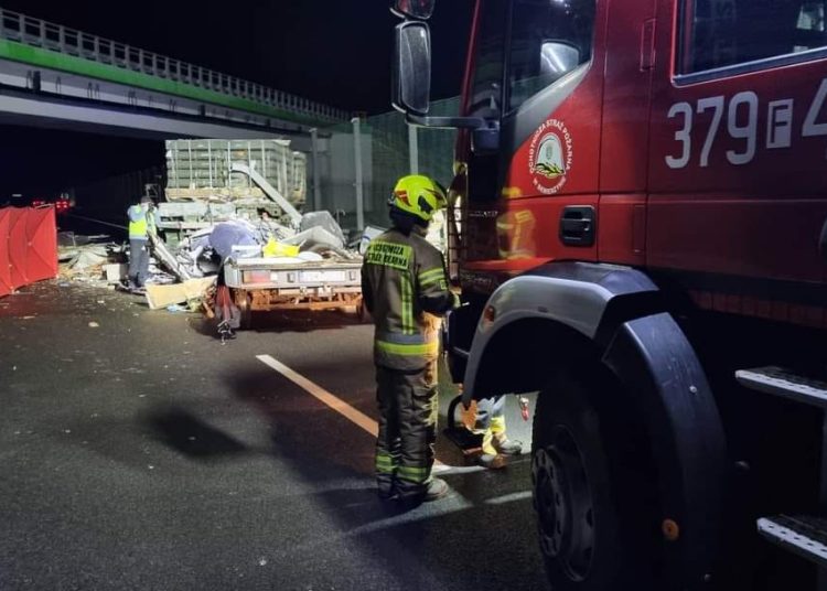 Pojazd typu Camper w którym podróżowały dwie osoby najechał na stojący na środku drogi wojskowy samochód ciężarowy. Uderzenie było tak mocne, że Camper dosłownie rozpadł się, a dwie osoby, które w nim przebywały poniosły śmierć na miejscu. Utrudnienia na drodze trwały do późnych godzin porannych. Okoliczności zdarzenia wyjaśnia policja.