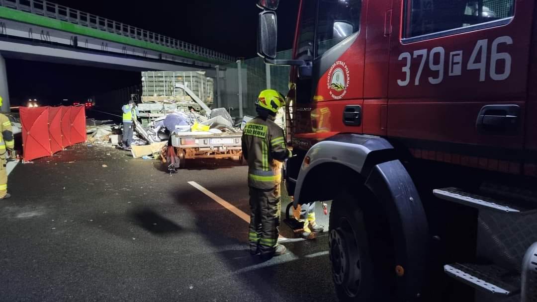 Pojazd typu Camper w którym podróżowały dwie osoby najechał na stojący na środku drogi wojskowy samochód ciężarowy. Uderzenie było tak mocne, że Camper dosłownie rozpadł się, a dwie osoby, które w nim przebywały poniosły śmierć na miejscu. Utrudnienia na drodze trwały do późnych godzin porannych. Okoliczności zdarzenia wyjaśnia policja.