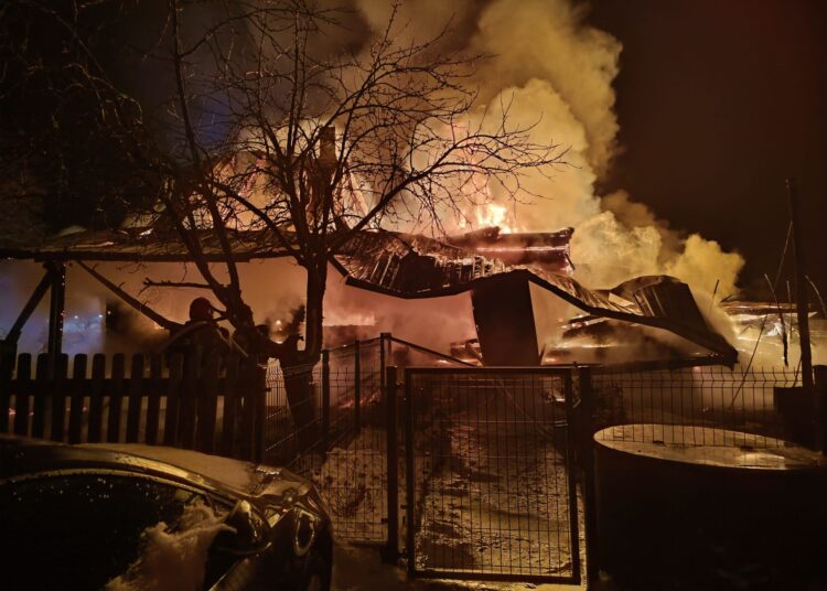 W chwili przybycia strażaków na miejsce zdarzenia drewniany, jednokondygnacyjny budynek mieszkalny całkowicie objęty był pożarem. Jego dach i część ścian była zawalona do wnętrza budynku – informuje straż pożarna.