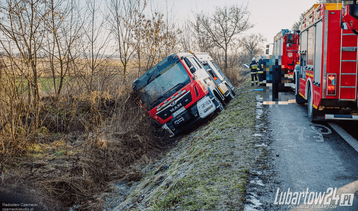 Dzisiaj rano na drodze powiatowej w powiecie lubartowskim doszło do zdarzenia z udziałem wozu strażackiego.