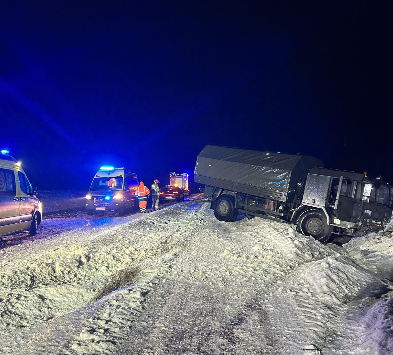 Przed godziną piątą rano kierujący wojskową ciężarówką jadąc drogą Łomża – Nowogród w pewnym momencie stracił panowanie nad pojazdem i zjechał do rowu. Do szpitala przewieziono jednego żołnierza.