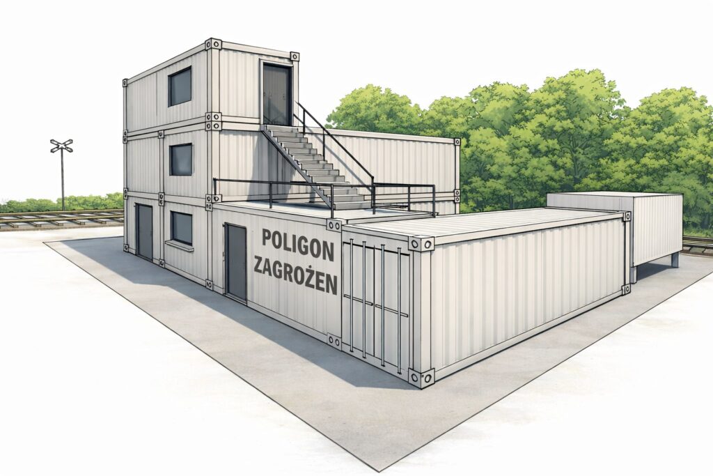 Poligon zagrożeń będzie obejmował stanowiska ćwiczebne z ratownictwa technicznego, ratownictwa wysokościowego, ratownictwa poszukiwawczego oraz gaszenia pożarów wewnętrznych jak i zewnętrznych. Poligon będzie posiadał również wewnętrzną linię kolejową – informuje burmistrz Tomasz Krupa.