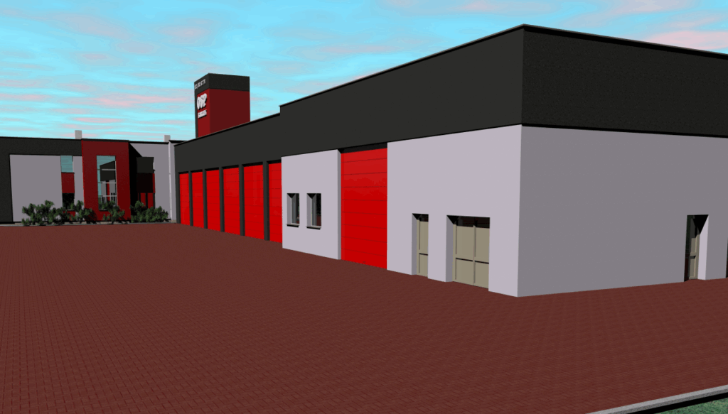 Na parterze budynku znajdzie się hala garażowa na sześć pojazdów, pomieszczenie naprawcze z boksem garażowym, magazyny, warsztat, dyspozytornia, szatnie, pomieszczenia dla strażaków, toalety i świetlica. Z kolei piętro to pomieszczenie zarządu, archiwum, pomieszczenie rekreacyjno-wypoczynkowe i magazyn. Zaprojektowano również wieże do suszenia węży.