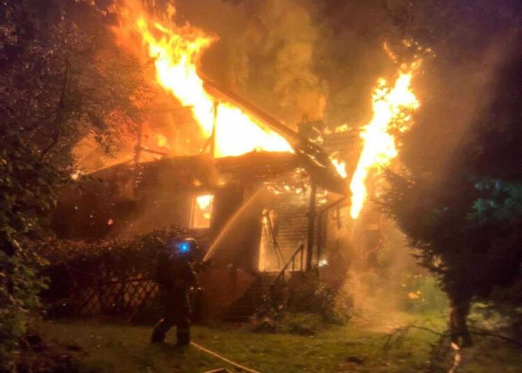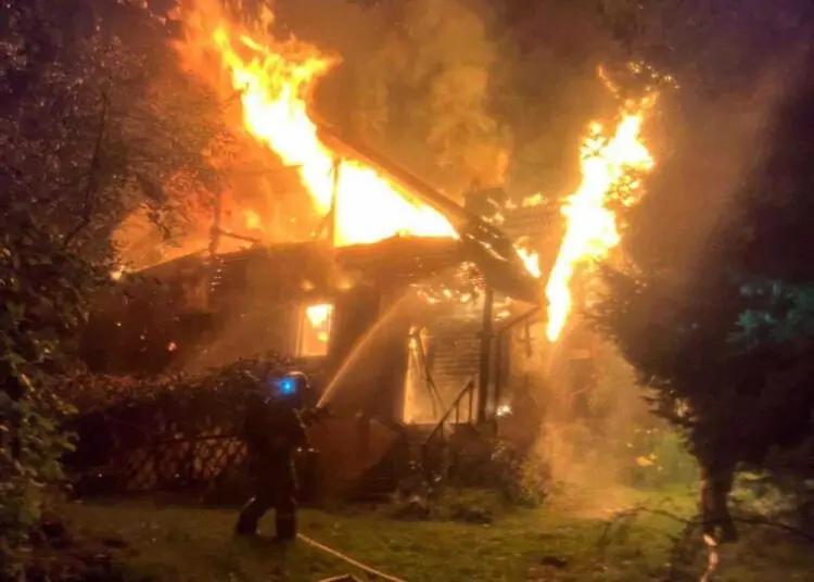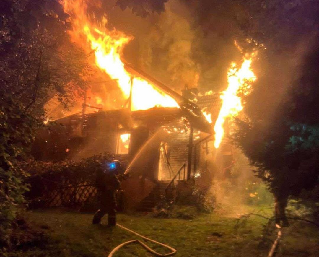 W momencie przyjazdu strażaków drewniany budynek mieszkalny był w całości objęty ogniem, nie udało się go uratować.