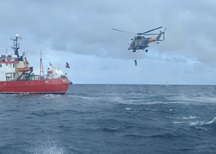 Pacjent został ewakuowany z pokładu statku przez żołnierzy i przetransportowany śmigłowcem do szpitala w Wejherowie.