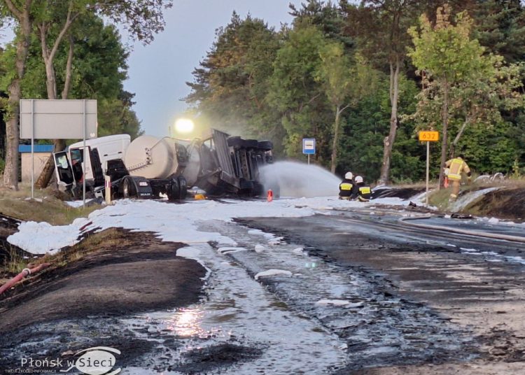 W wyniku uderzenia zestaw przewrócił się na bok, następnie doszło do wycieku przewożonego paliwa i zapłonu. W cysternie znajdowało się około 35 tysięcy litrów oleju napędowego i benzyny.