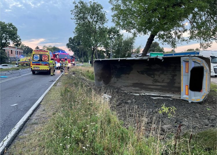Około godziny piątej rano na drodze krajowej nr 62 doszło do zderzenia samochodu osobowego z ciągnikiem siodłowym z naczepą. W wyniku zderzenia oba pojazdy wylądowały w przydrożnych rowach. Zestaw przewrócił się na bok.