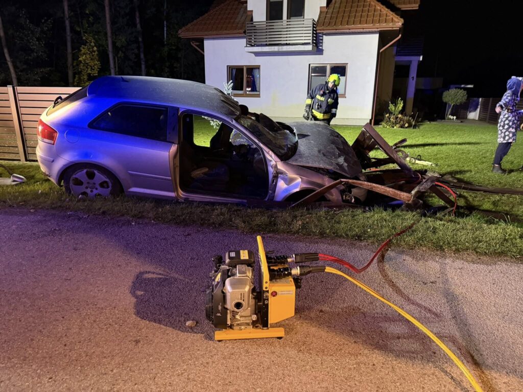 W sobotę po godzinie czwartej rano kierujący audi z nieznanych przyczyn zjechał z drogi i uderzył w ogrodzenie. Pojazdem kierował 25-letni mężczyzna, obok niego siedział 42-letni pasażer. Obaj zostali przewiezieni do szpitala.
