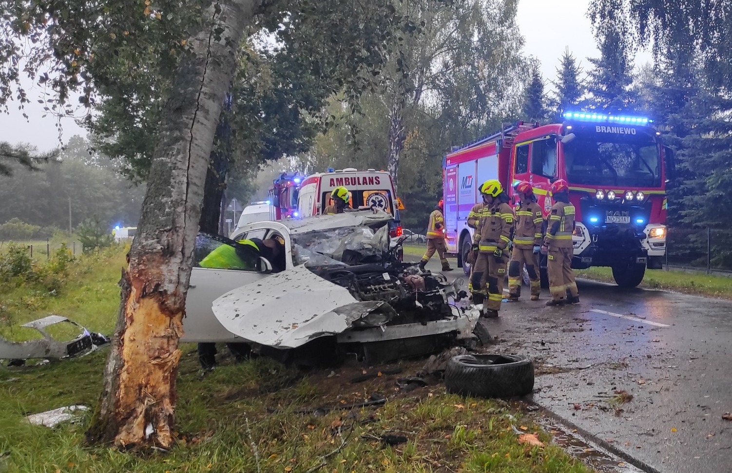 Autem podróżowała jedna osoba. Siła uderzenia była tak duża, że przez kilkanaście minut strażacy z wykorzystaniem narzędzi hydraulicznych usuwali odkształcone elementy pojazdu, aby uwolnić rannego kierowcę – przekazała braniewska straż pożarna.