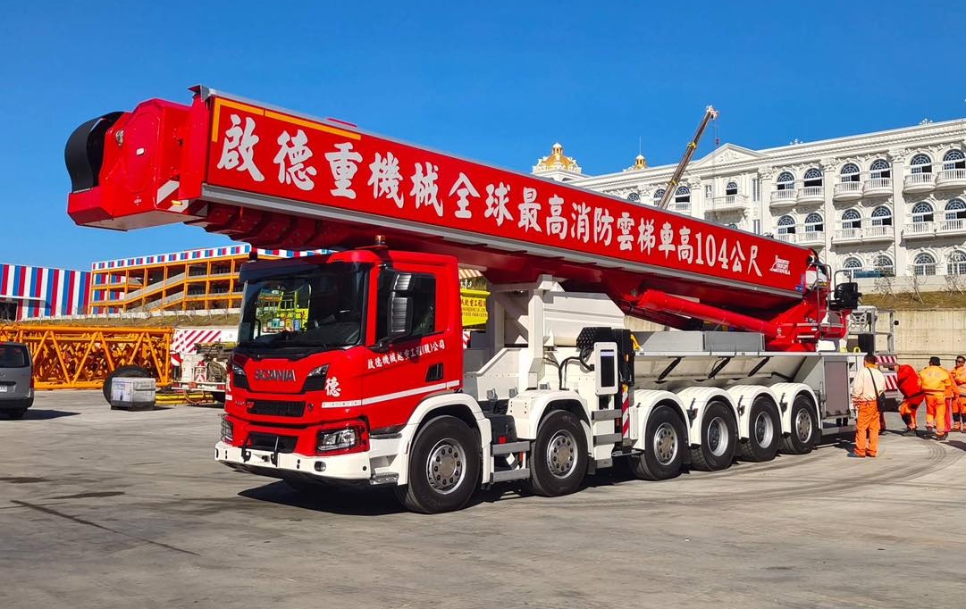 Do jednej z firm działających w Tajwanie dotarł najwyższy na Dalekim Wschodzie samochód specjalny z podnośnikiem.