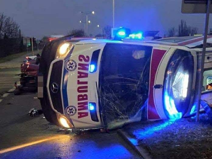 Policjanci wstępnie ustalili, że kierujący karetką jadąc alarmowo wjechał na skrzyżowanie, gdzie w pojazd uderzyło osobowe volvo, następnie przewrócił się na bok.
