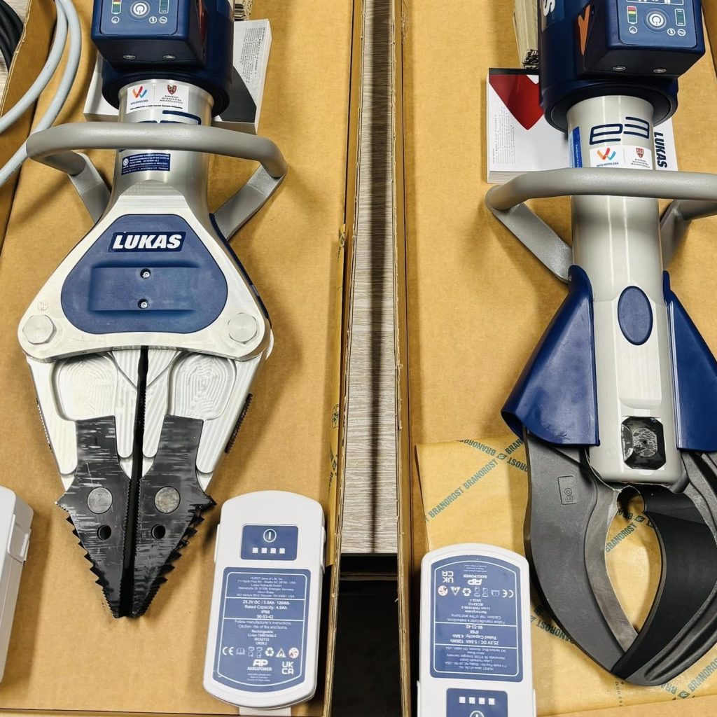 Strażacy otrzymali akumulatorowy zestaw narzędzi hydraulicznych serii E3 firmy LUKAS. W jego skład wchodzą nożyce, rozpieracz ramieniowy, dwa zapasowe akumulatory, ładowarka, zasilacz i mata narzędziowa.