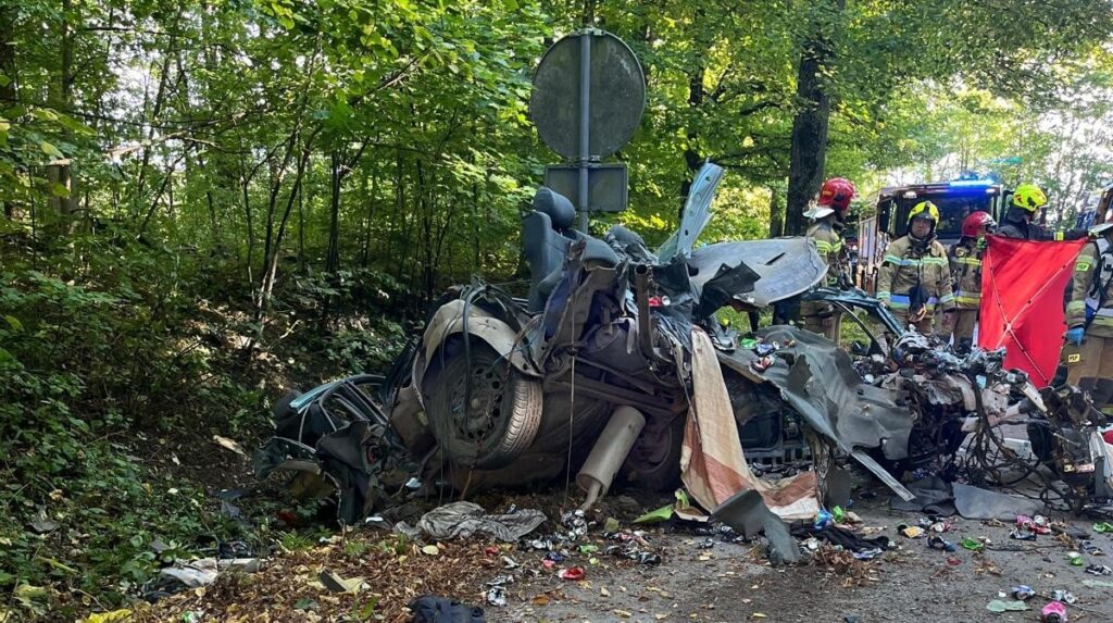 Kierujący samochodem marki audi, 27-letni mężczyzna, z nieznanych przyczyn stracił panowanie nad pojazdem i uderzył w drzewo. Siła uderzenia była tak duża, że osobówka rozpadła się na części.